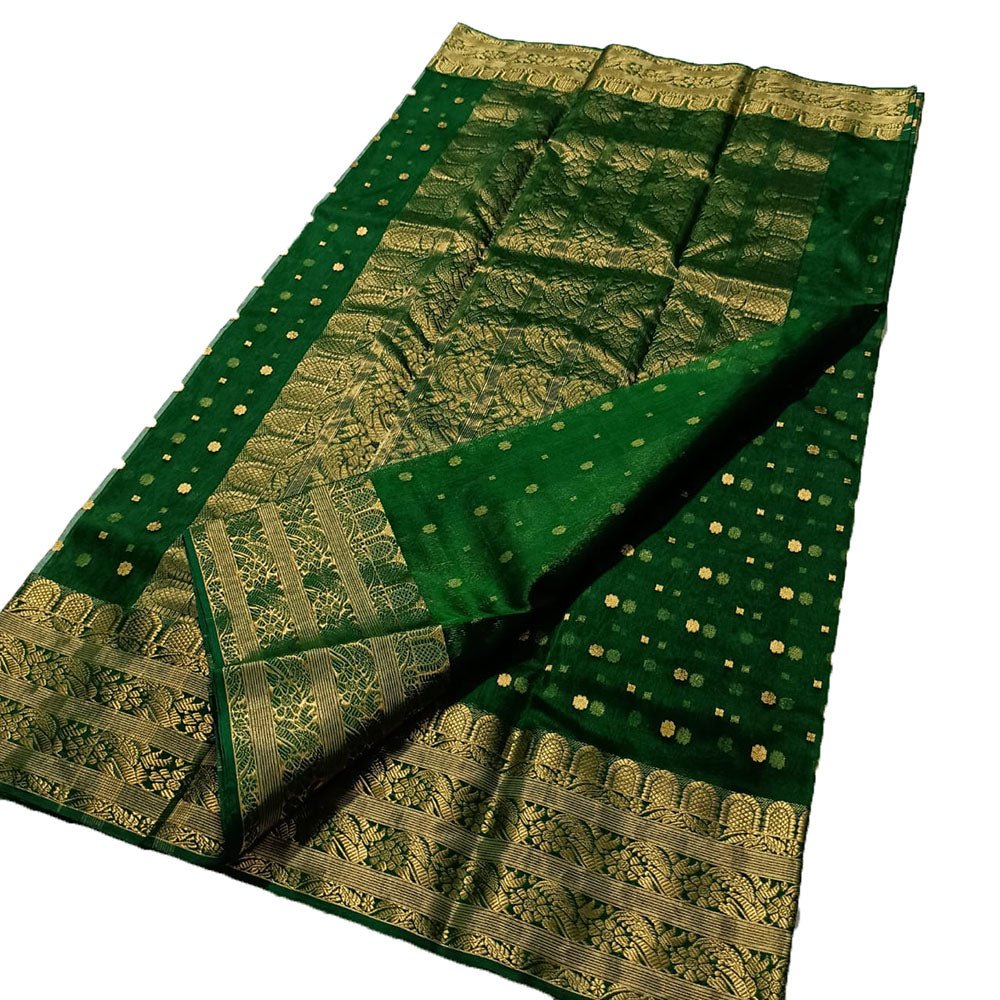 - 1. High-Quality Silk: The Green Handloom Chanderi Pure Katan Silk Saree is made from high-quality silk that is soft, comfortable, and durable.