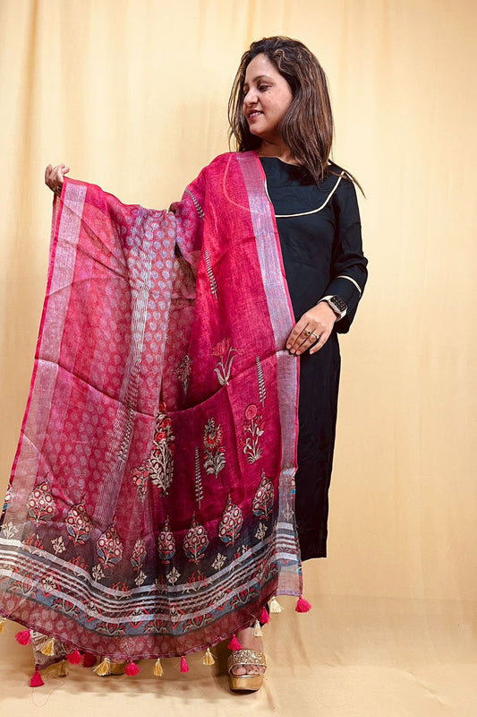 Stylish Pink Linen Dupatta with Digital Print for Fashionable Look