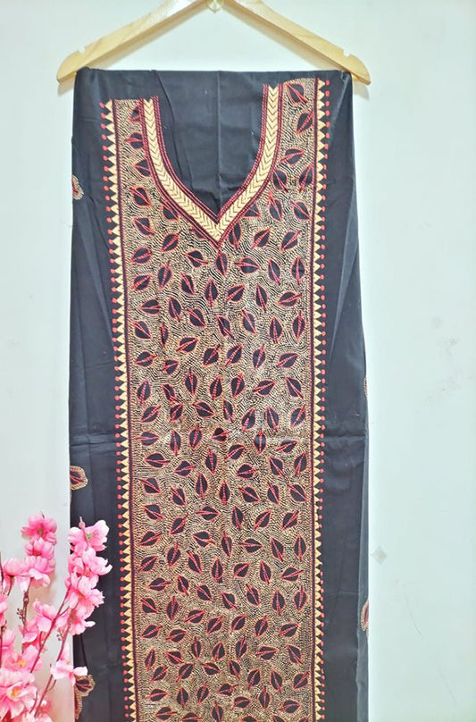 Black Hand Embroidered Kantha Cotton Unstitched Kurti