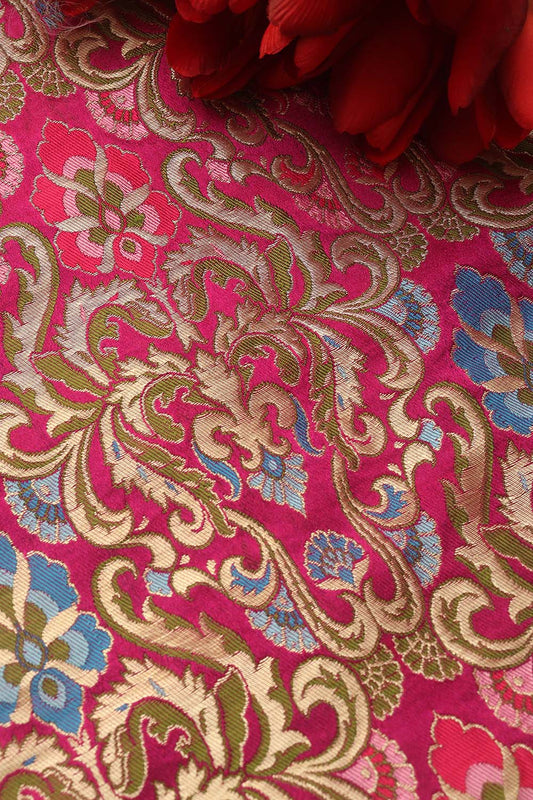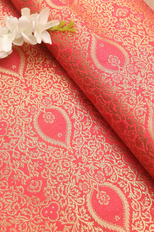 Exquisite Pink Banarasi Kimkhwab Silk Fabric - 1 Mtr Length