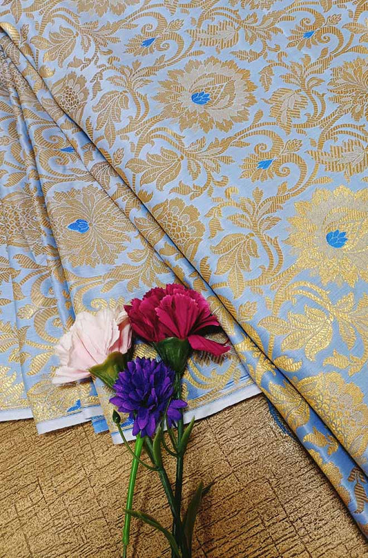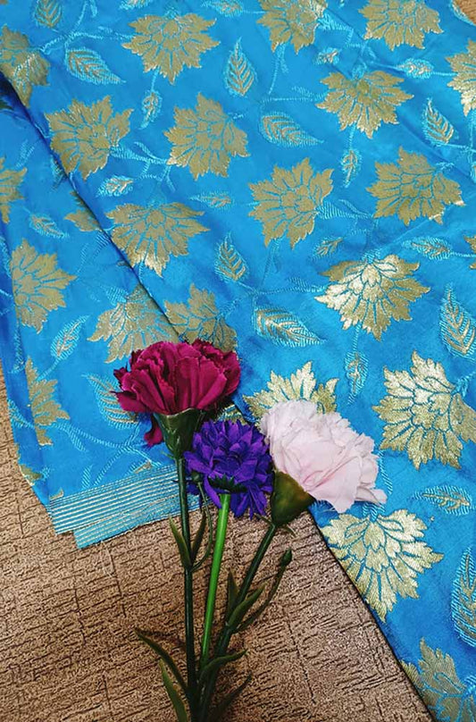 Blue Banarasi Kimkhwab Silk Fabric ( 1 Mtr )