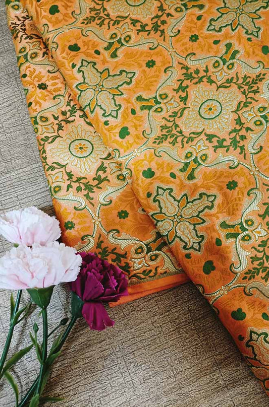 Orange Banarasi Kimkhwab Silk Fabric ( 1 Mtr )