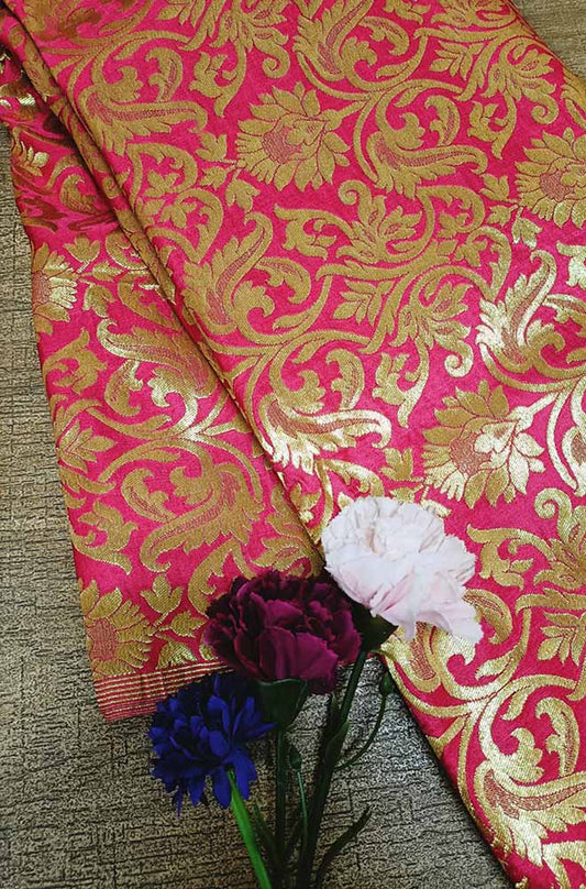 Pink Banarasi Kimkhwab Silk Fabric ( 1 Mtr )