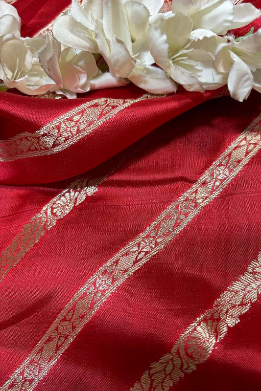 Dyeable Banarasi Handloom Pure Silk Stripe Design Fabric ( 1 Mtr )