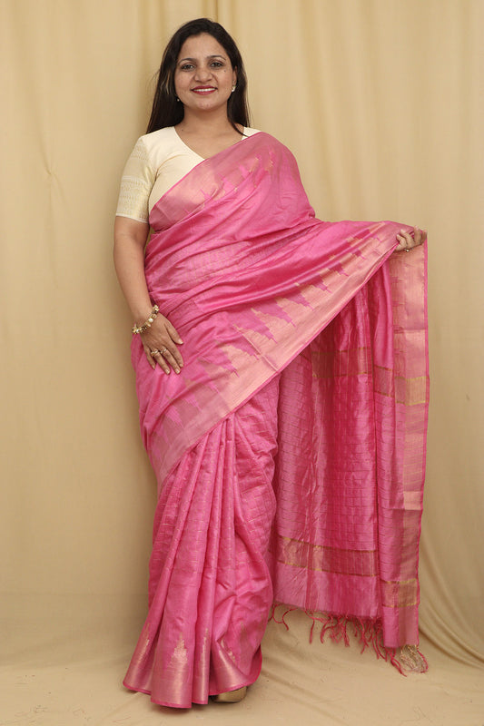 Exquisite Pink Handloom Banarasi Pure Kora Silk Saree - Perfect for Any Occasion