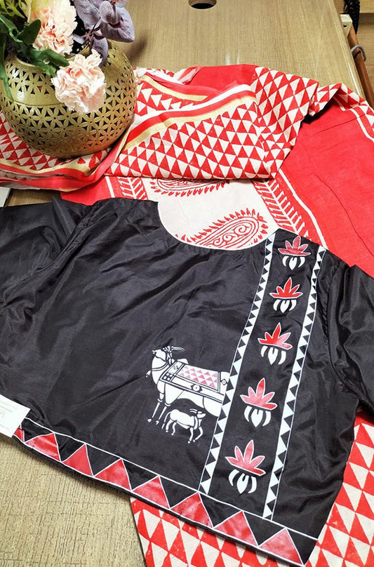 Exquisite Red Hand Painted Murshidabad Silk Saree - Perfect for Special Occasions