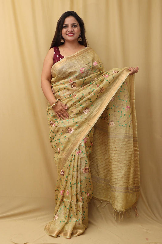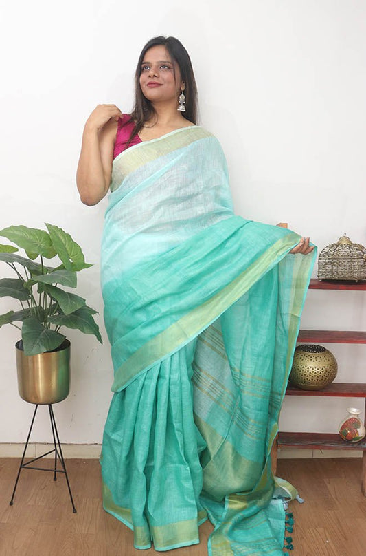 Multicolor Handloom Pure Linen Shaded Dye Saree