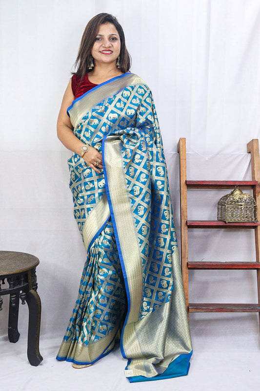Shop Blue Handloom Banarasi Silk Saree Online - Exclusive