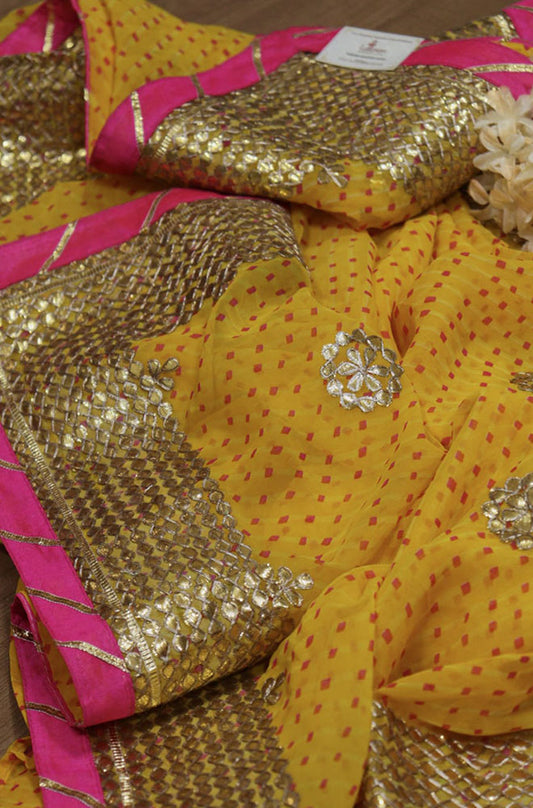 Stunning Yellow Gota Patti Georgette Saree for Elegant Occasions