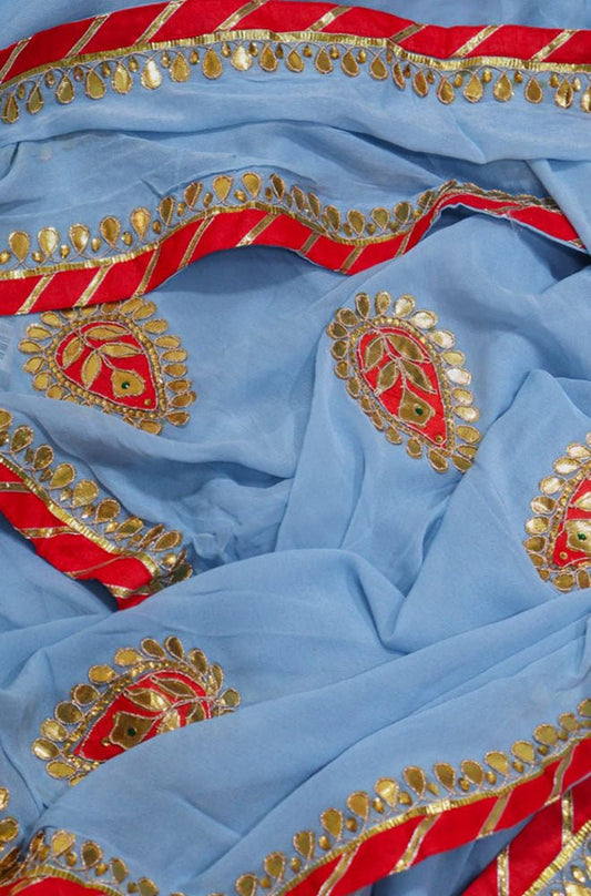 Stunning Grey Gota Patti Georgette Saree for Elegant Occasions