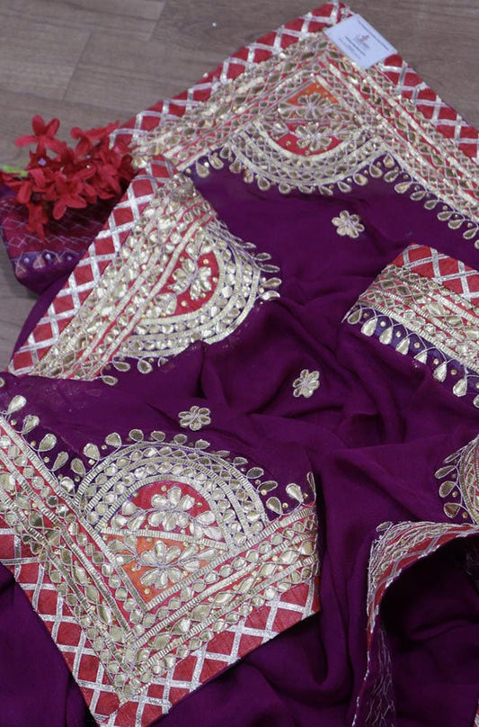 Stunning Purple Gota Patti Georgette Saree for Elegant Occasions