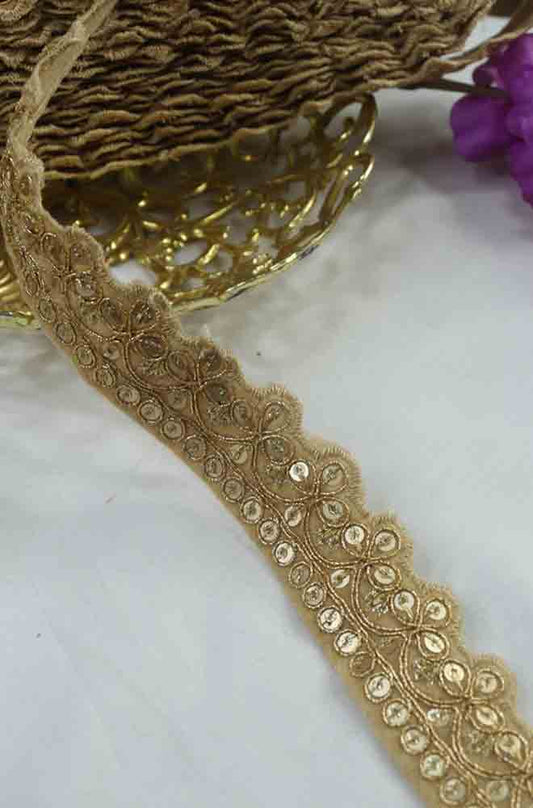 Golden Sequin Fancy Lace - Add Sparkle and Elegance to Your Traditional Outfits with this Gorgeous 9 Meters Statement Piece.