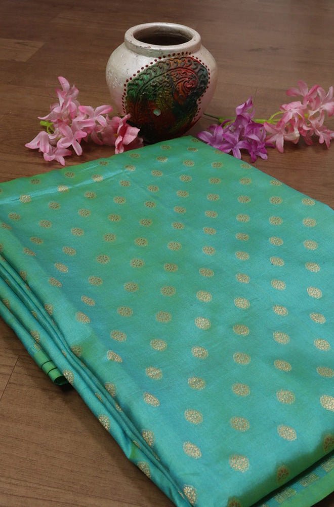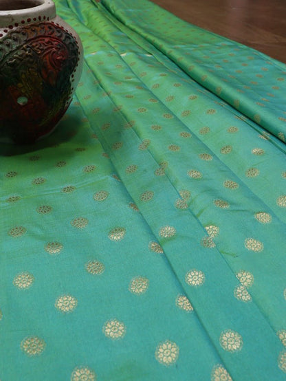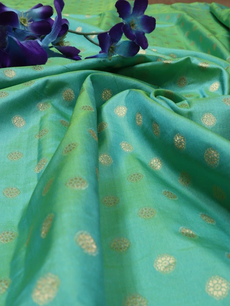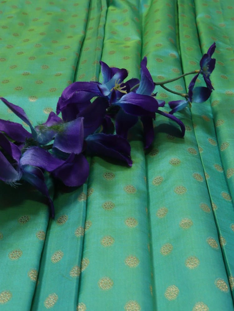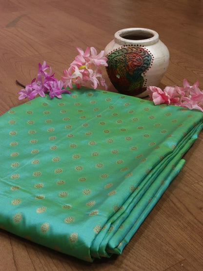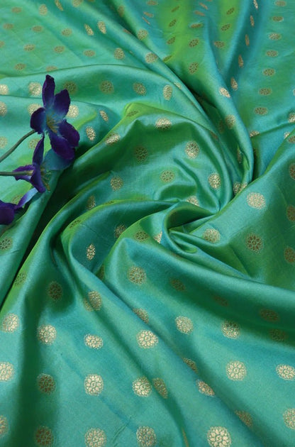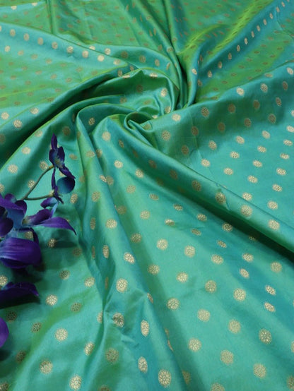 Green Handloom Banarasi Pure Katan Silk Fabric (1Mtr)