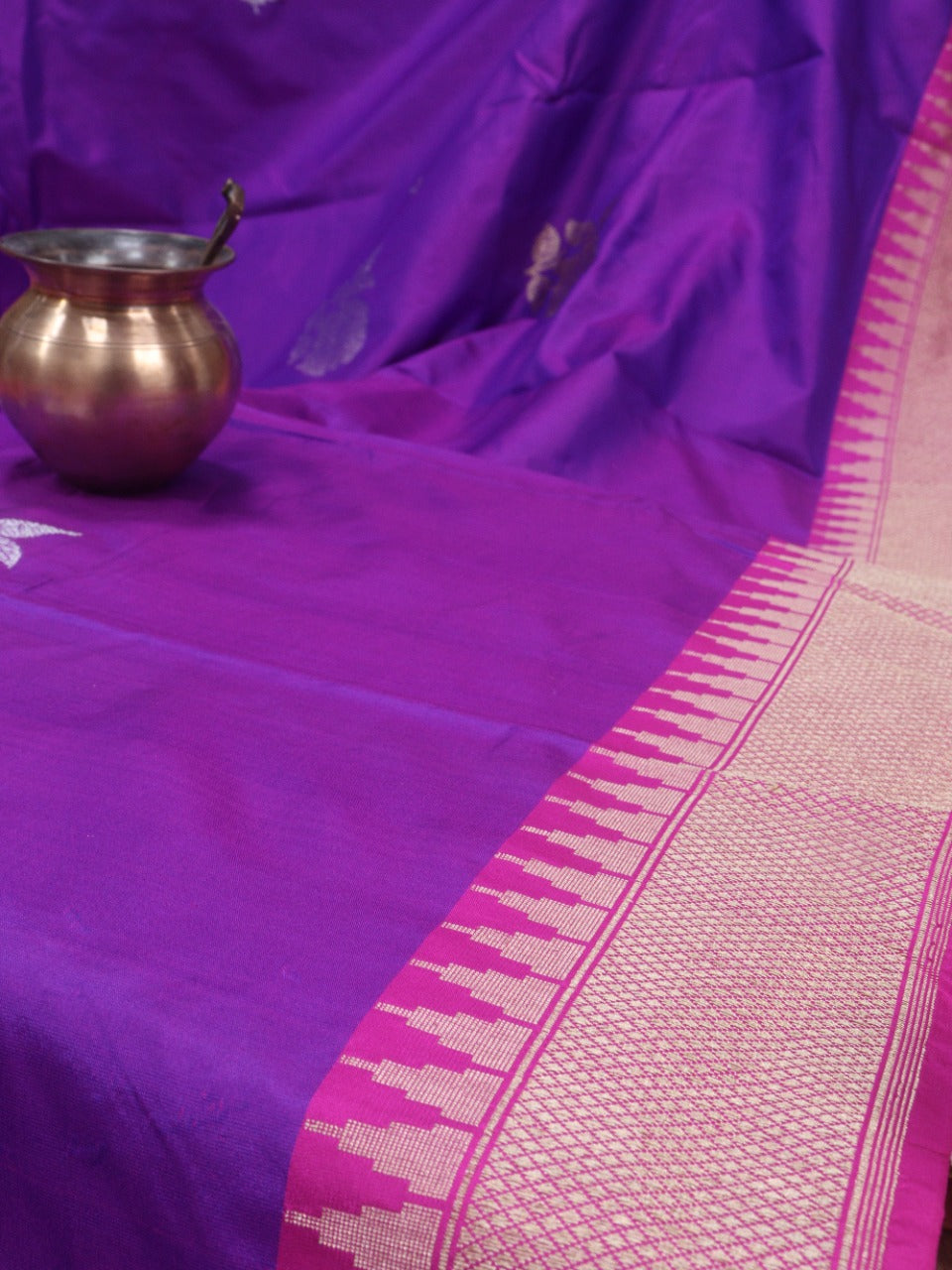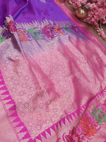 "When you think of occasion wear, festive wear, special dressing, you think of dressing, you think of banarasi; such is the flavour and flamboyance of these sarees. Known for their gold and silver zari, fine silk and opulent embroidery, they are heavy sarees with inspired designs. Made in Varanasi, they are characteristsed by intricate intertwining floral and foliate motifs, kalga and bel and a string of upright leaves at the outer edge of border. These sarees in addition to its beauty manages to evoke a feeling of nostalgia for every woman. It reminds one of their mothers, aunt and grandmothers donned in banarasis on very special occasions. Managing to garner appreciation since so many generations and being favourite till today is an exceptional feat by the artisans and Banarsai saree. Come; let us renew our special bond with these sarees only from the treasure trove of Banarasi saree at Luxurion World.
