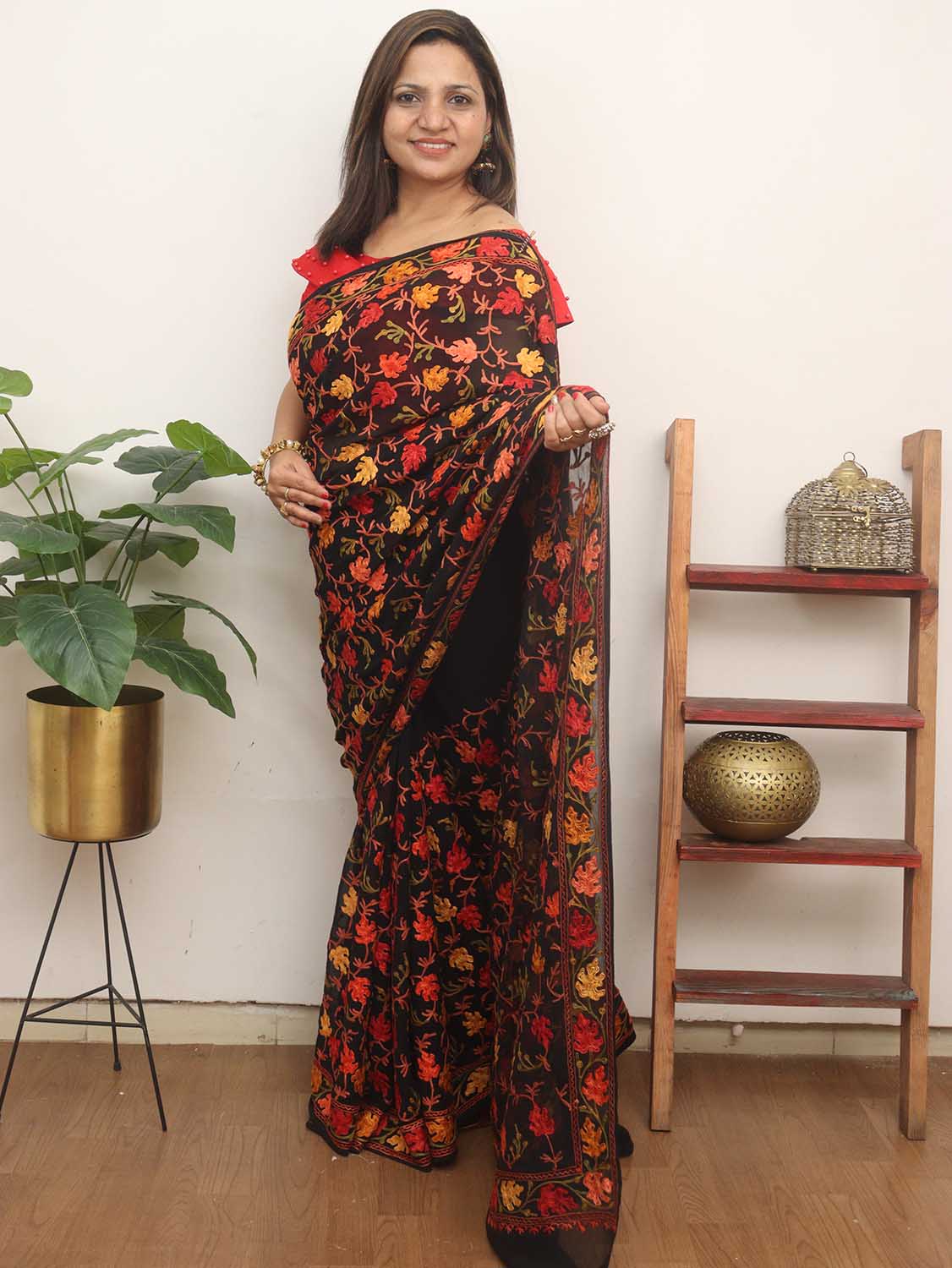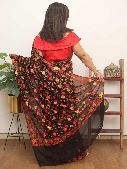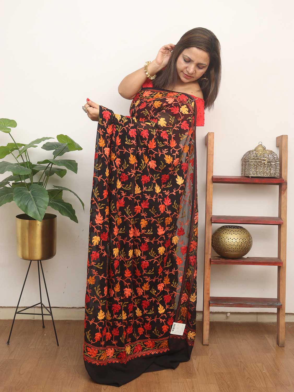 The beauty of Kashmir is not confined to its landscape. It extends to the beauty exhibited by myriad forms of its art work that brings about a delightful mold in fabric and garments. Kashmiri embroidery holds fantasy for women since time eternal. Aari work Sarees are exemplary in its own class by their sheer delicate nature of embroidered patterns.