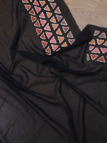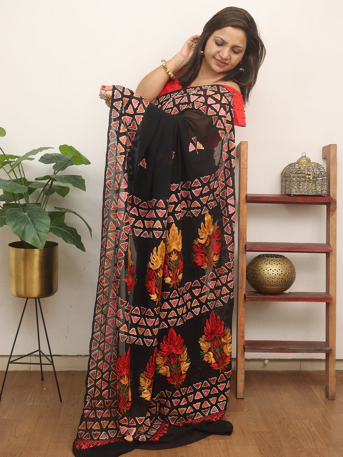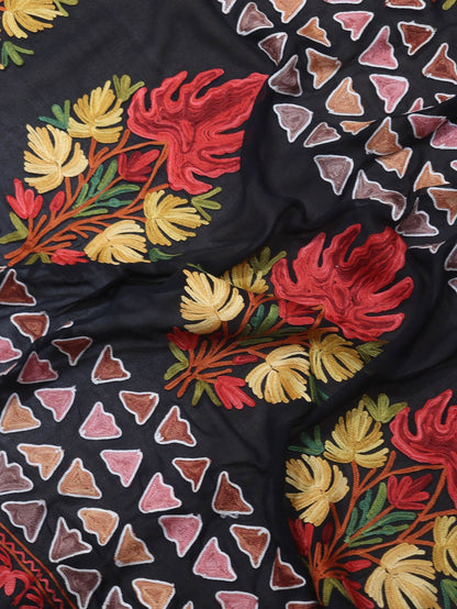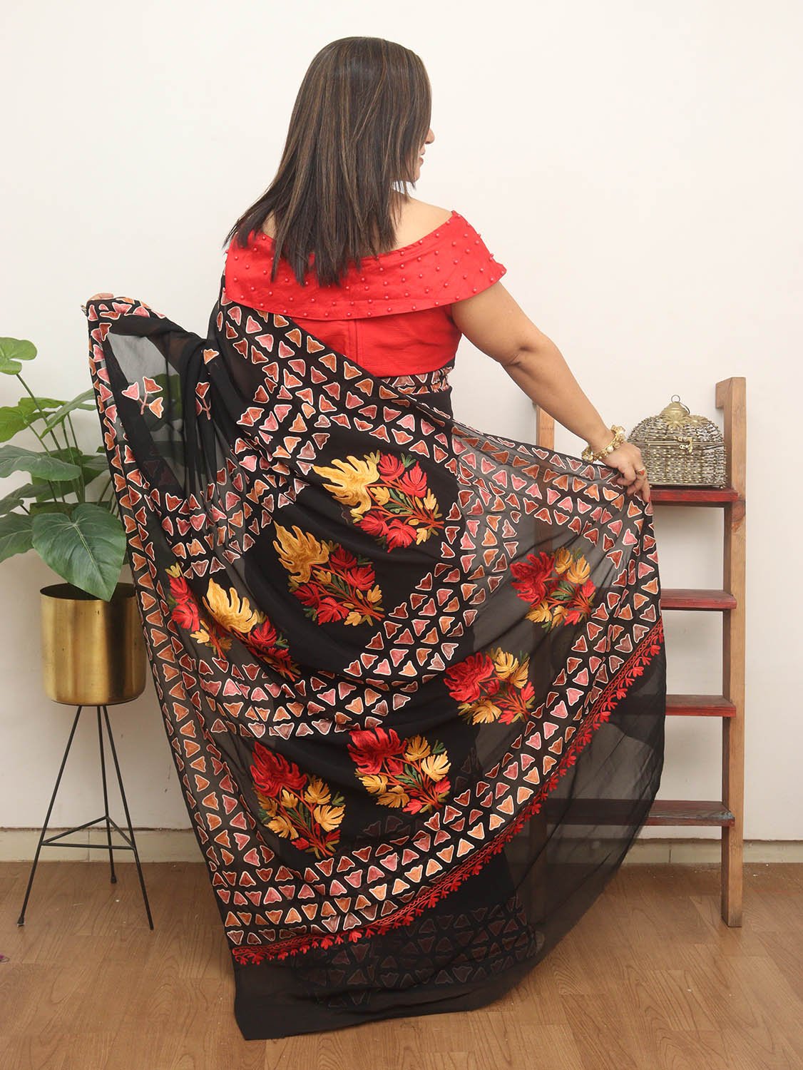 Black Embroidered Kashmiri Aari Work Georgette Saree