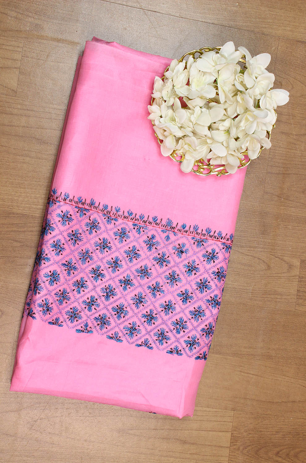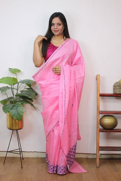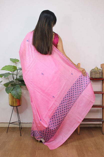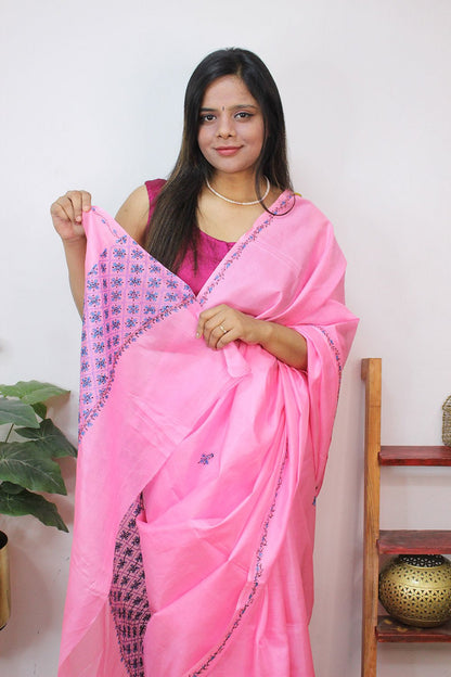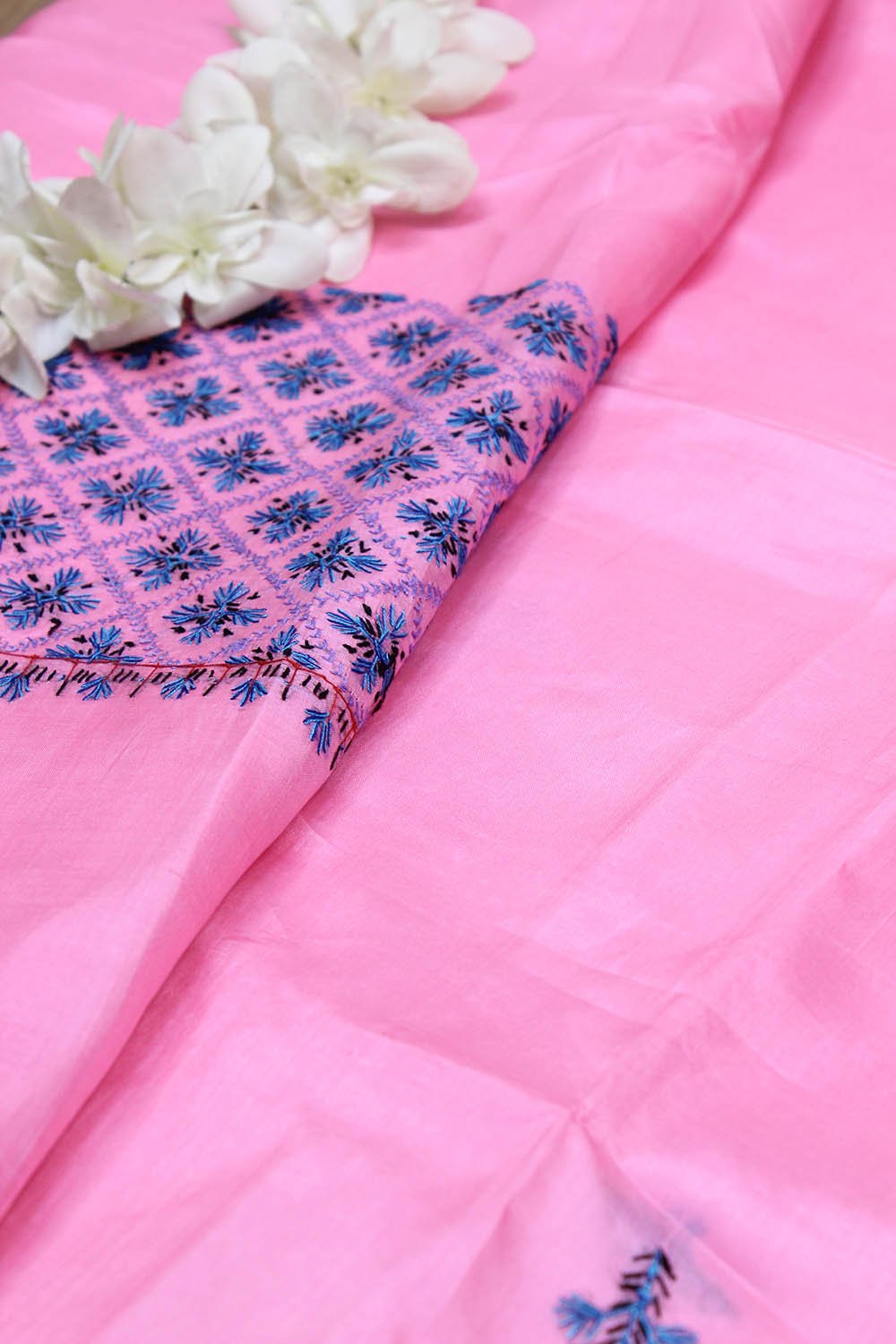 Pink Embroidered Kashmiri Sozni Work Pure Silk Saree