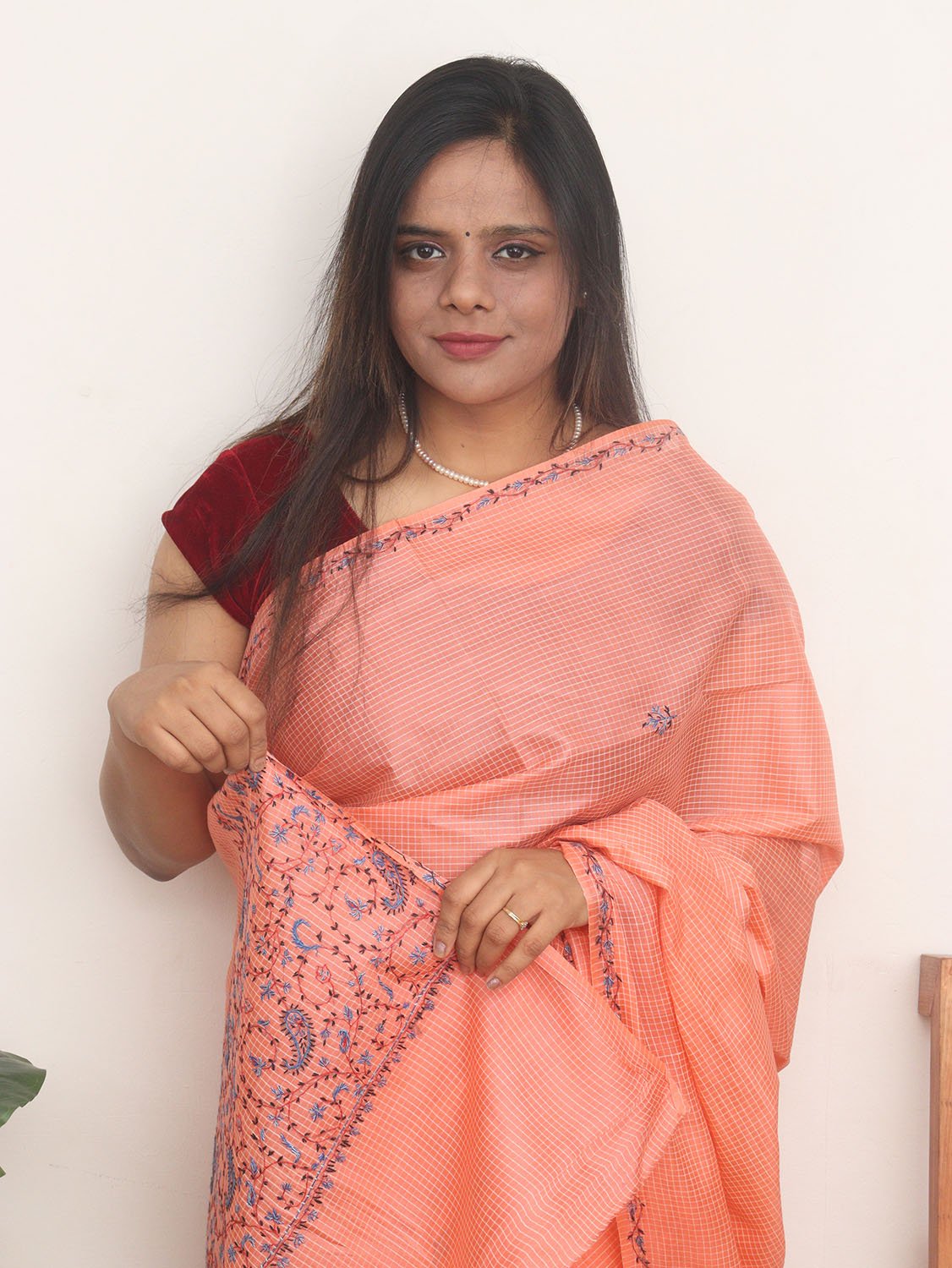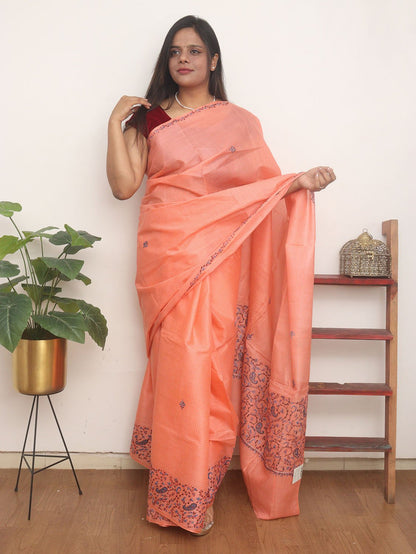 From our exclusive collection of Kashmiri Craftsmen, this is a Kashmiri Saree with Blouse which you would love to have it in your wardrobe. This Saree is a perfect occasion wear. Its an exclusive saree embroidered and a fresh collection directly from weavers in Kashmir. Sozni (or suzani) embroidery is a style of embroidery from the Jammu and Kashmir region. (It Comes With Contrast Blouse Piece).