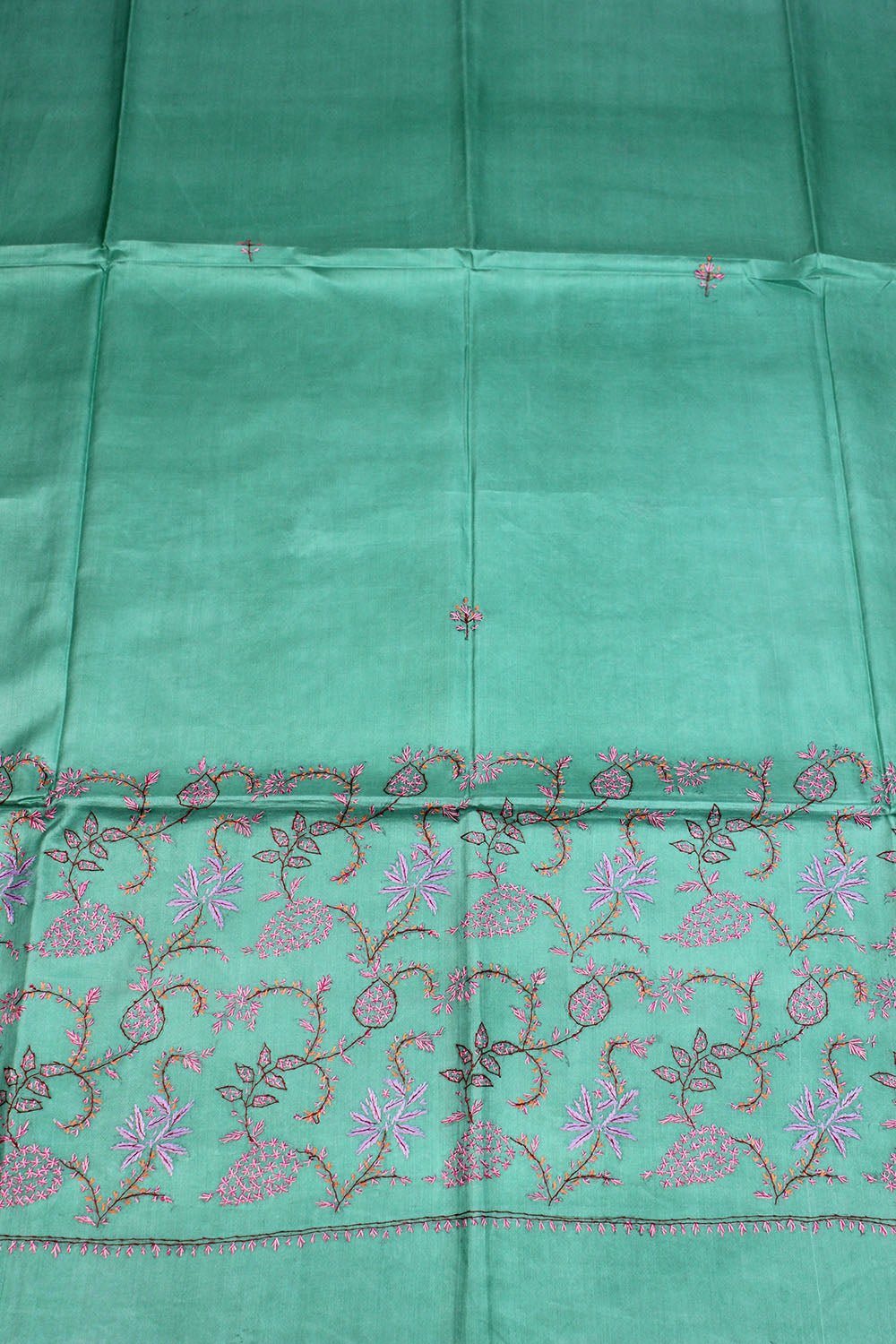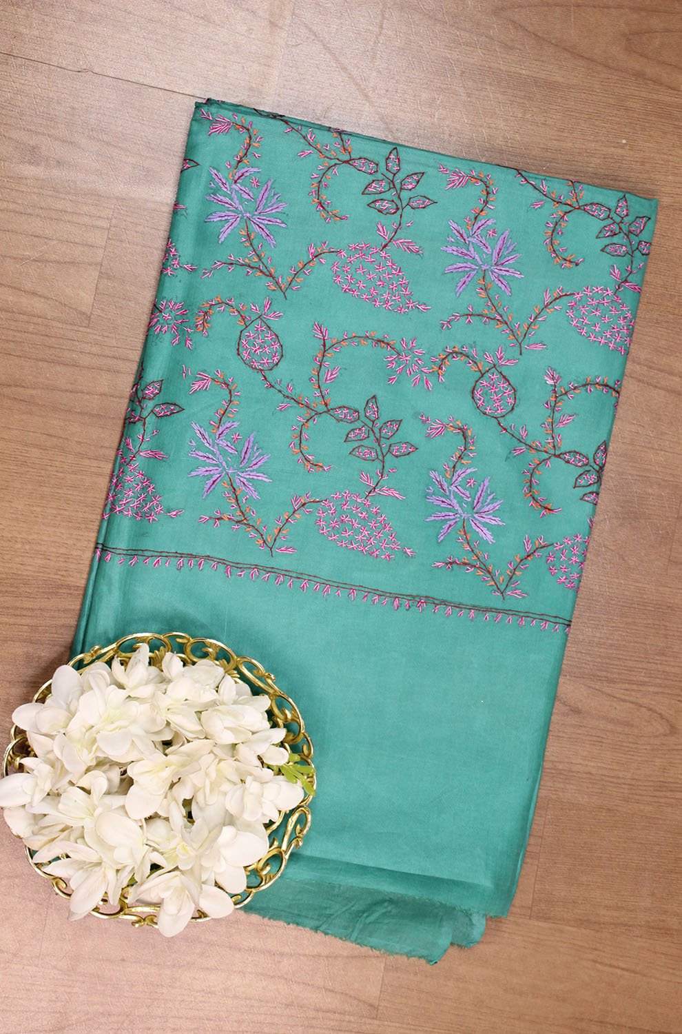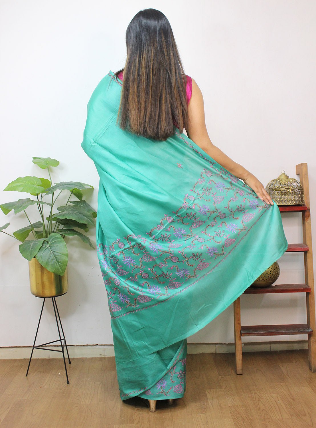 From our exclusive collection of Kashmiri Craftsmen, this is a Kashmiri Saree with Blouse which you would love to have it in your wardrobe. This Saree is a perfect occasion wear. Its an exclusive saree embroidered and a fresh collection directly from weavers in Kashmir. Sozni (or suzani) embroidery is a style of embroidery from the Jammu and Kashmir region. (It Comes With Contrast Blouse Piece).