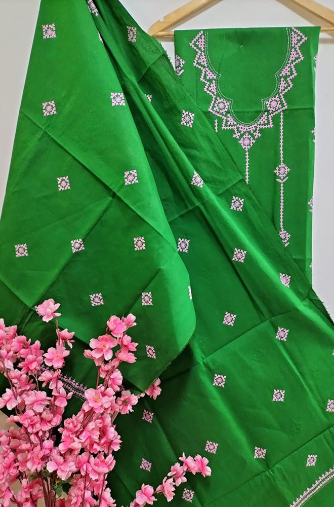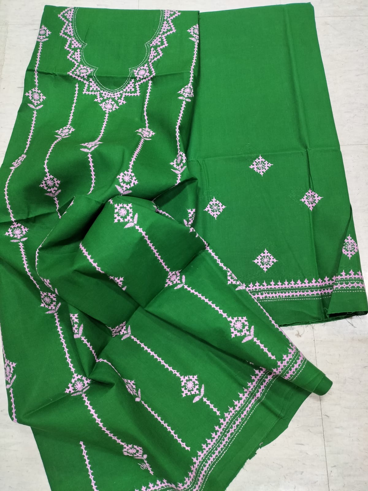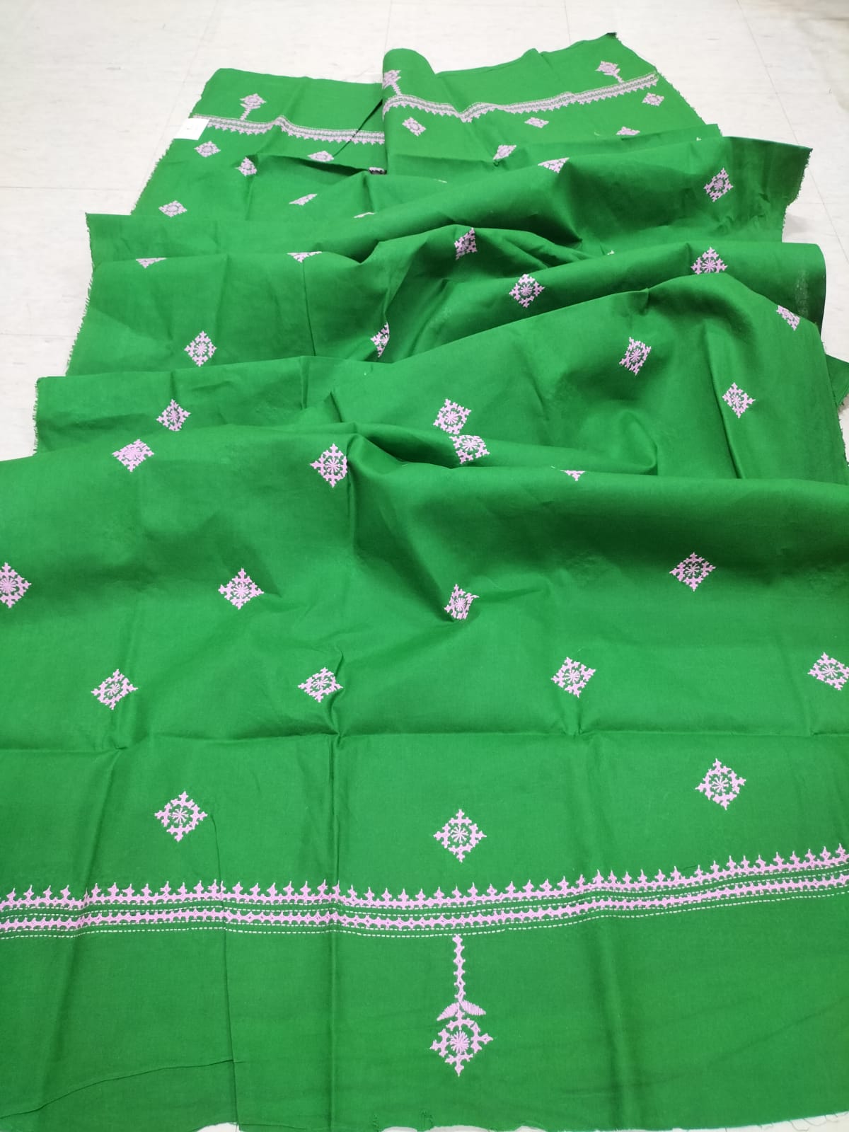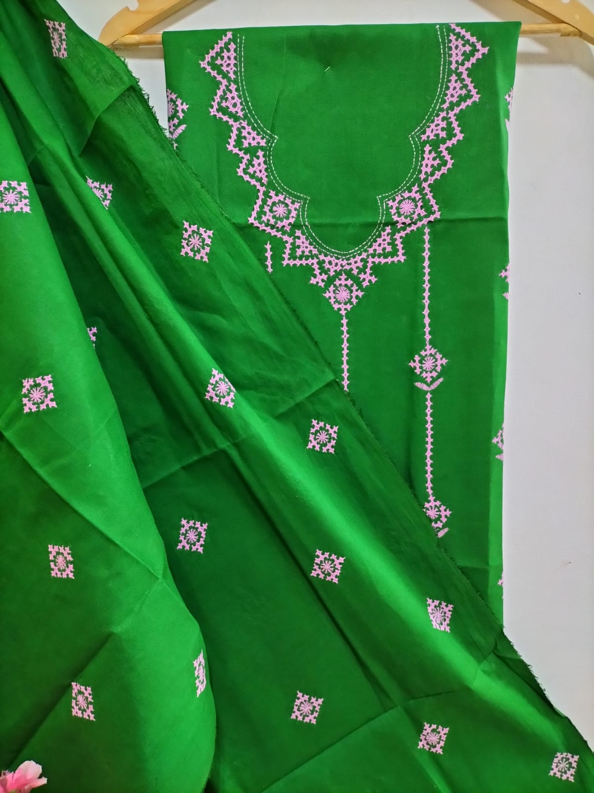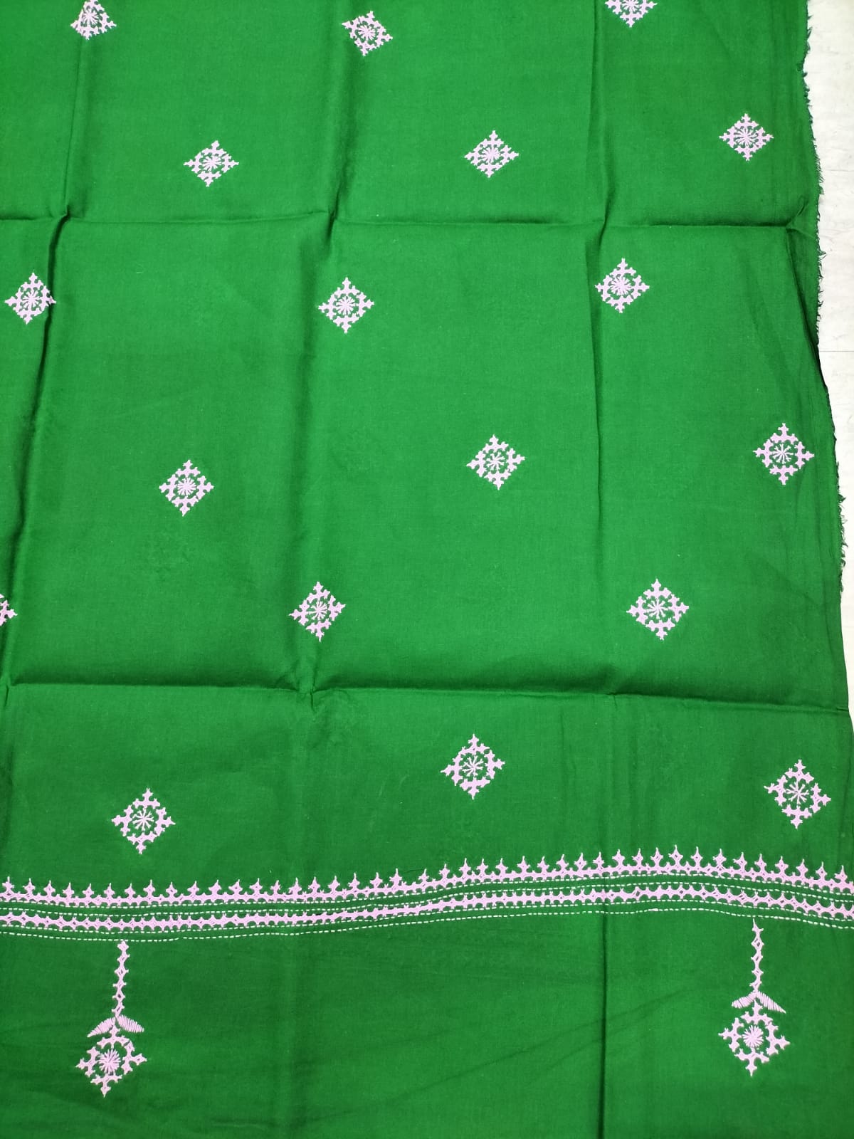 This Hand Embroidered Kantha Cotton Suit is a must have in your wardrobe which is a perfect occasion wear. Its an exclusive Suit. It comes with Top, Bottom and Dupatta Fabric.