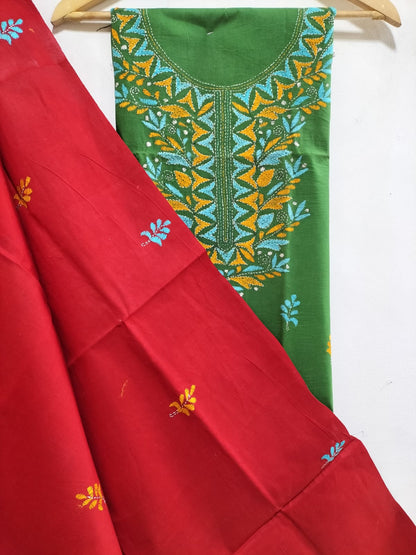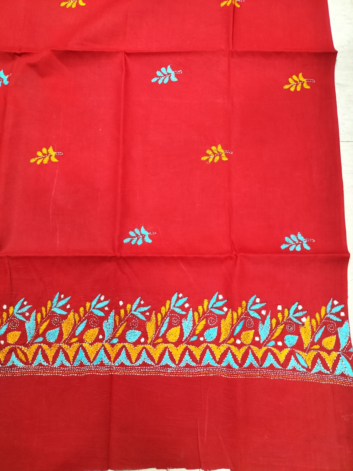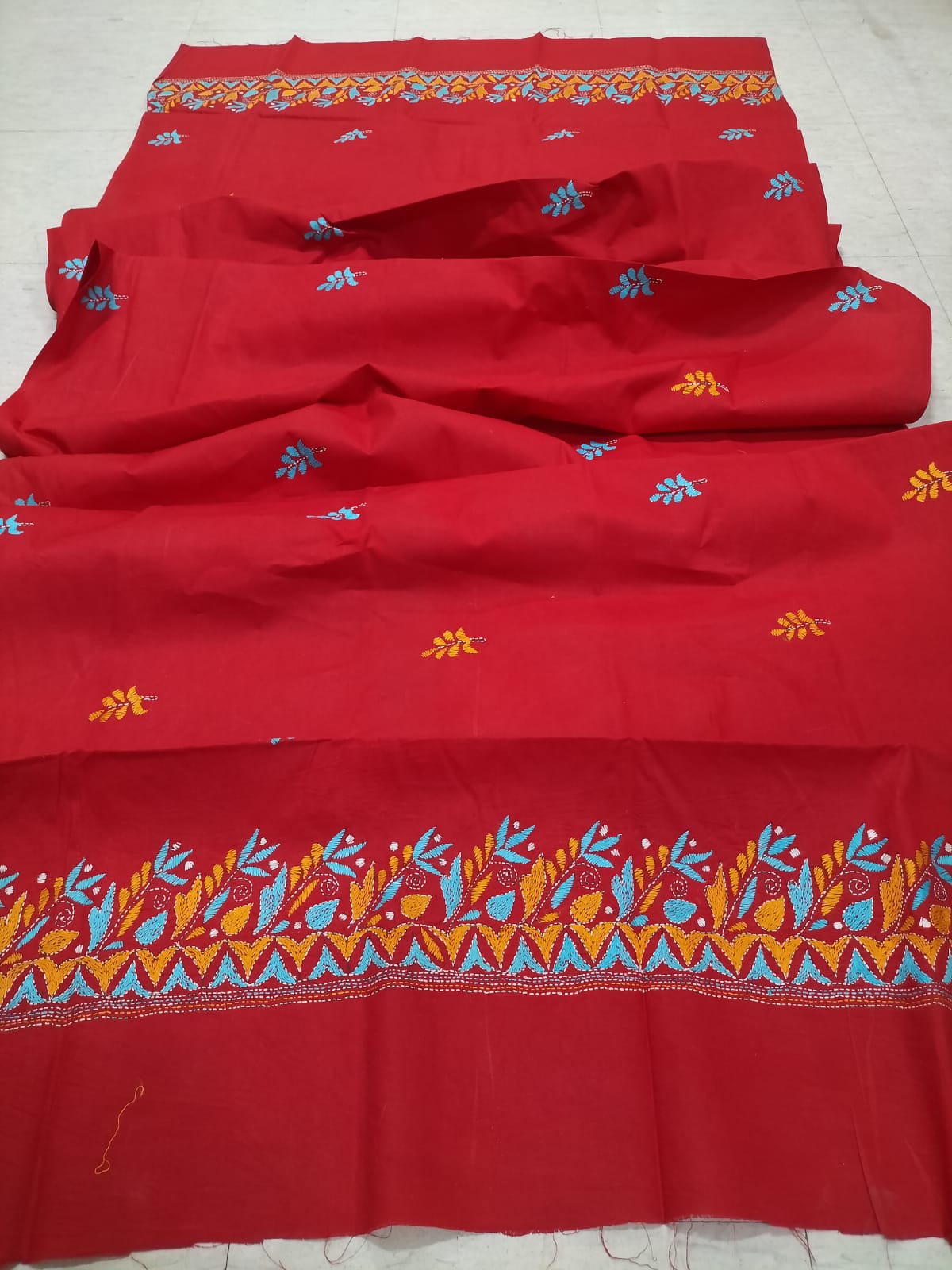 This Hand Embroidered Kantha Cotton Suit is a must have in your wardrobe which is a perfect occasion wear. Its an exclusive Suit. It comes with Top, Bottom and Dupatta Fabric.