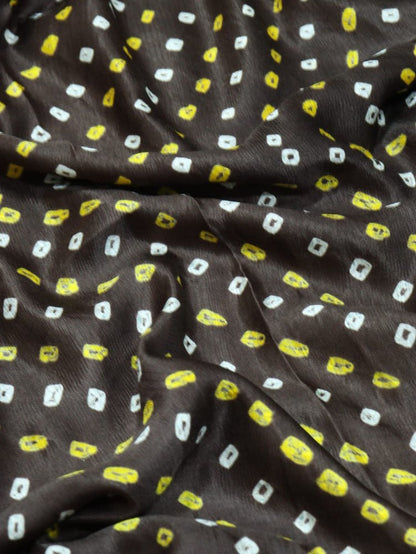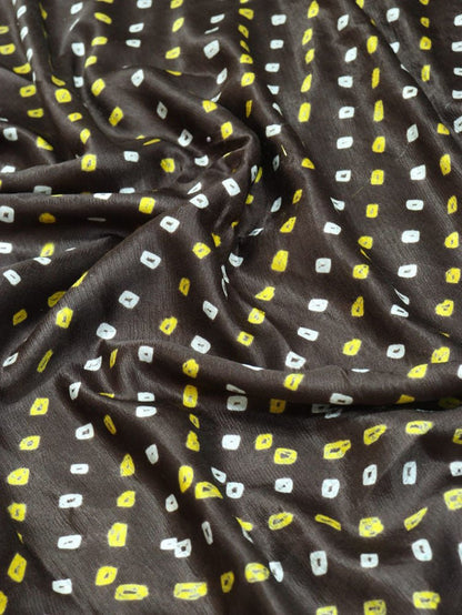 This is a Bandhani Fabric - an ideal party wear. The art of Bandhani is a highly skilled process. The technique involves dyeing a fabric, which is tied tightly with a thread at several points,thus producing variety of patterns like Leheriya, Mothra, Ekdali and Shikari depending on the manner in which the cloth is tied. Bandhani work, after the processing is over, results into a variety of symbols including, dots, squares, waves and strips. A meter length of cloth can have thousands of tiny knots .These knots form a design once opened after dyeing in bright colors.