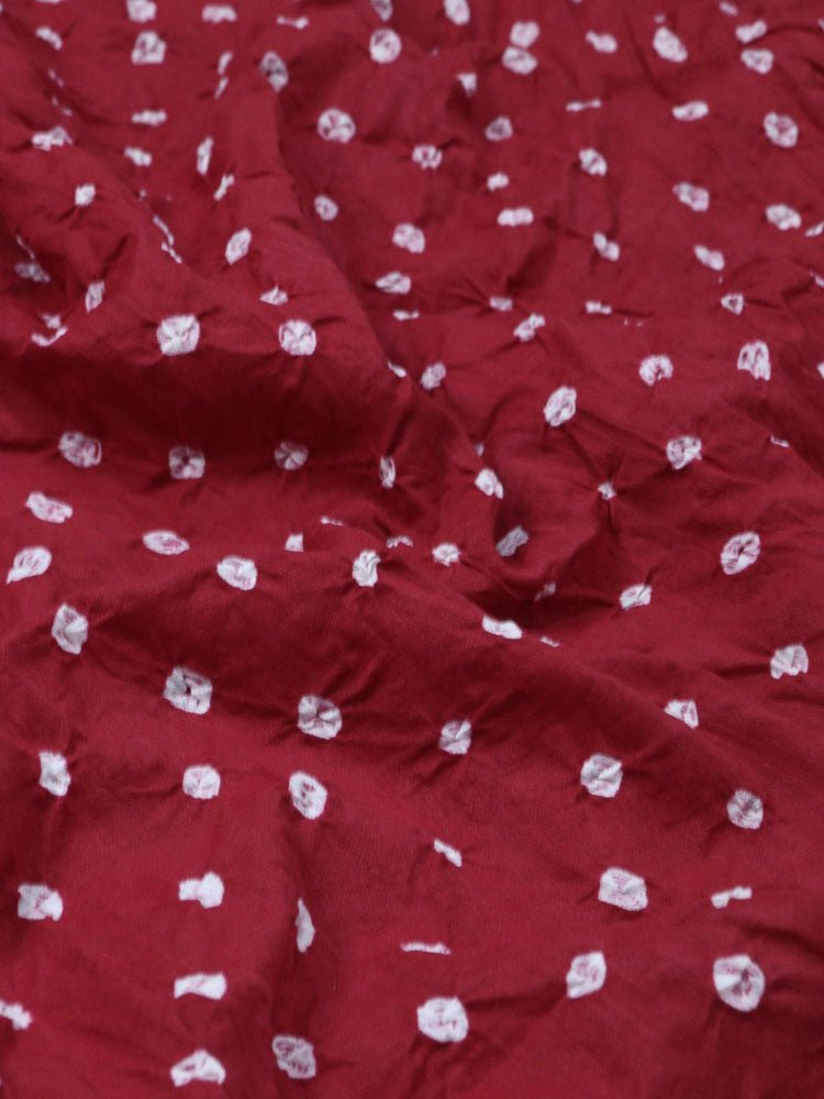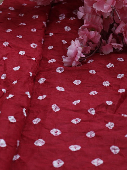 This is a Bandhani Fabric - an ideal party wear. The art of Bandhani is a highly skilled process. The technique involves dyeing a fabric, which is tied tightly with a thread at several points,thus producing variety of patterns like Leheriya, Mothra, Ekdali and Shikari depending on the manner in which the cloth is tied. Bandhani work, after the processing is over, results into a variety of symbols including, dots, squares, waves and strips. A meter length of cloth can have thousands of tiny knots .These knots form a design once opened after dyeing in bright colors.