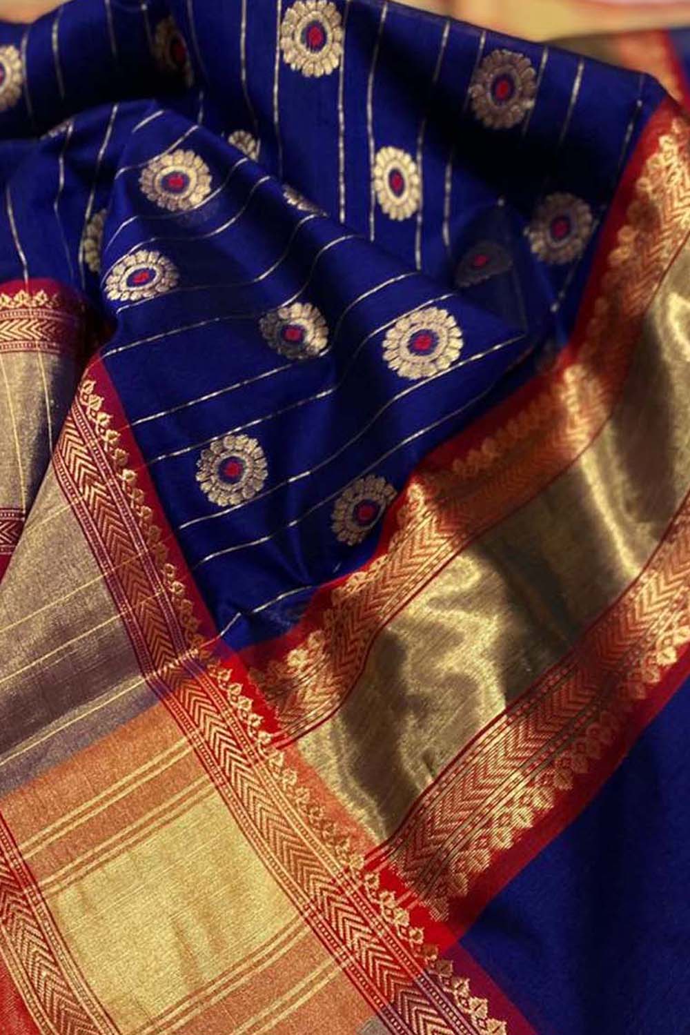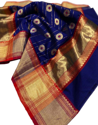 The Blue Chanderi Handloom Pure Katan Silk Saree is a stunning piece of traditional Indian attire that exudes elegance and grace. Made from the finest quality silk, this saree features intricate handloom weaving in a beautiful shade of blue. The soft and lightweight fabric drapes effortlessly, making it perfect for any special occasion. The saree is adorned with delicate zari work and a contrasting border that adds a touch of sophistication. The rich texture and luxurious feel of the fabric make it a must-have in every woman's wardrobe.