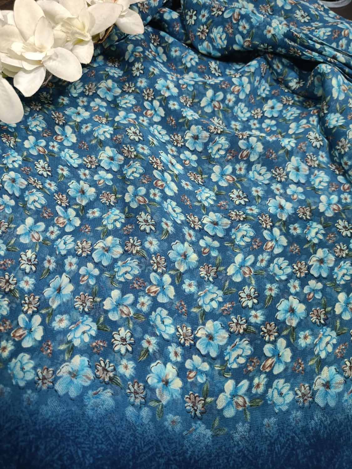 Blue Digital Printed Georgette Fabric is a stunning and versatile material that is perfect for creating elegant and eye-catching garments. This fabric features a beautiful digital print in shades of blue, creating a unique and vibrant look. The lightweight and flowy nature of Georgette fabric makes it ideal for creating flowing dresses, skirts, and blouses that drape beautifully on the body. The digital printing process ensures that the colors are vivid and long-lasting, making this fabric a great choice for special occasions or everyday wear.
