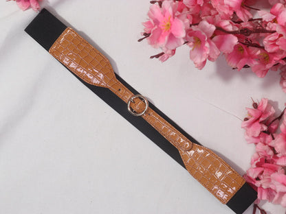 The Stylish Brown Faux Leather Belt with Elastic Buckle is the perfect professional accessory to complete any outfit. Made with high-quality materials, this belt is both durable and stylish. The elastic buckle ensures a comfortable fit for all body types, making it a versatile addition to any wardrobe.