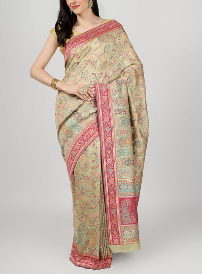 The beauty of Kashmir is not confined to its landscape. It extends to the beauty exhibited by myriad forms of its art work that brings about a delightful mold in fabric and garments. Kashmiri embroidery holds fantasy for women since time eternal. Aari work Sarees are exemplary in its own class by their sheer delicate nature of embroidered patterns.
