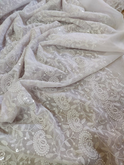 These chikankari fabrics are embroidered fabrics. These fabrics looks beautiful when one wears it. These Chikankari Fabrics are a class of richly decorative shuttle-woven fabric. Excellent piece to make suit, blouse, or gown. Pair it with a plain matching fabric to make full dress.
