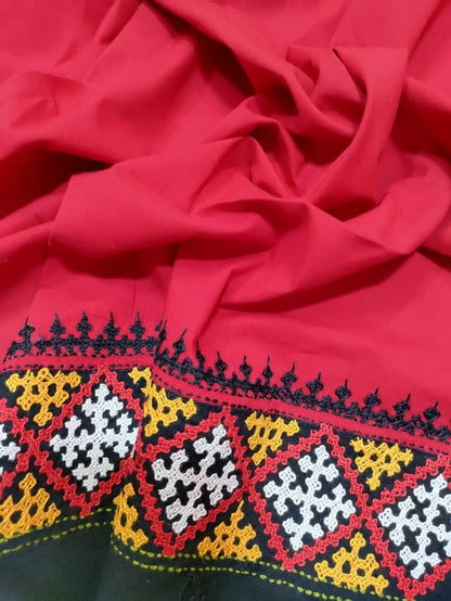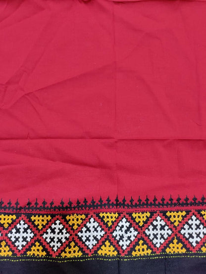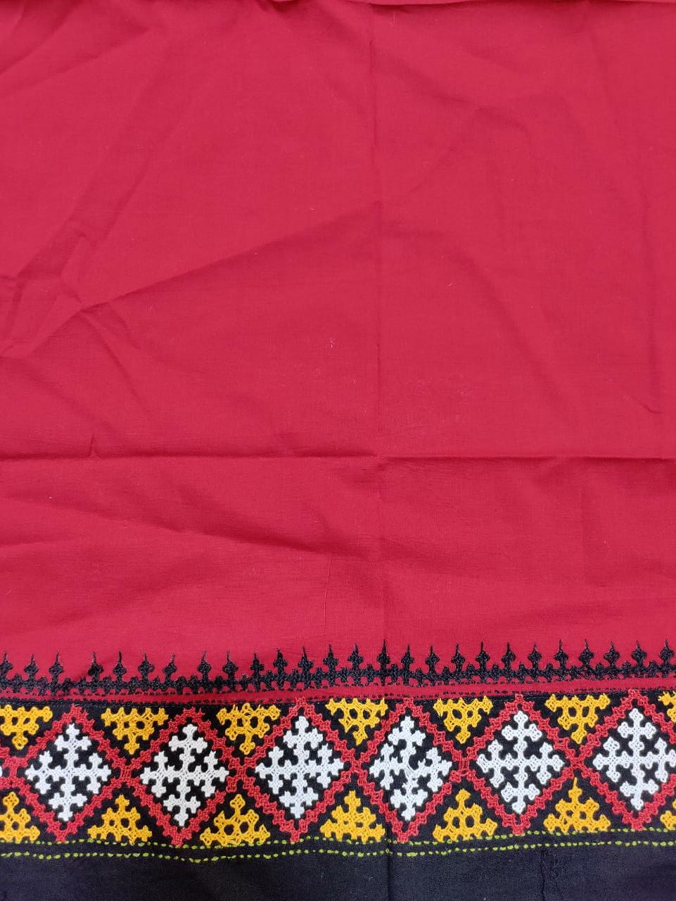 Introducing our latest addition to the collection - the Black And Red Hand Embroidered Kantha Work Cotton Blouse Piece (0.75 Mtr). This exquisite piece is made from high-quality cotton fabric and features intricate hand embroidery in a beautiful black and red color combination. The kantha work adds a unique touch to the blouse piece, making it perfect for any occasion.
