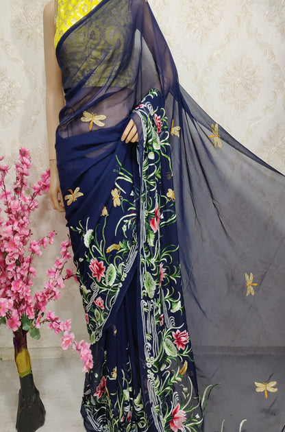 Parsi Embroidery is an aesthetic composition of pictorial traditions and an emblem of elegance. Combining the beauty inherent in four cultural traditions – Persian, Chinese, Indian and European – this exquisite textile form is truly an intercultural craft. .The Parsi Saree are indeed worth a treasure. Parsi Saree are comparatively more costly but their appeal and style are so immensely enchanting that it overcomes all the hurdle of price tag for an avid buyer. Since it is the hand embroidery, one of the most prized possessions of a Parsi woman is their Parsi embroidered clothes. Parsi embroidery incorporates motifs that have deep meanings. The reverence of the Parsis towards nature is evident in their embroidery work.