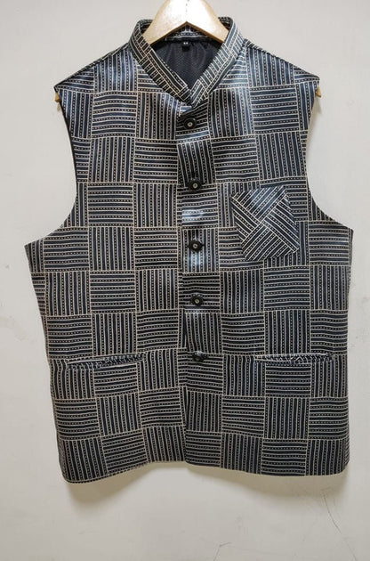 Grey Mashru Silk Nehru Jacket (made on custom order)