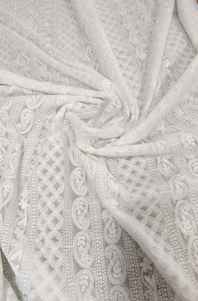 These fabrics looks beautiful when one wears it. These Chikankari Fabrics are a class of richly decorative shuttle-woven fabric. Excellent piece to make suit, blouse, or gown. Pair it with a plain matching fabric to make full dress.