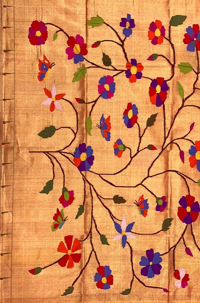 Golden Handloom Paithani Brocade Pure Silk Blouse Piece Fabric ( 1 Mtr )
