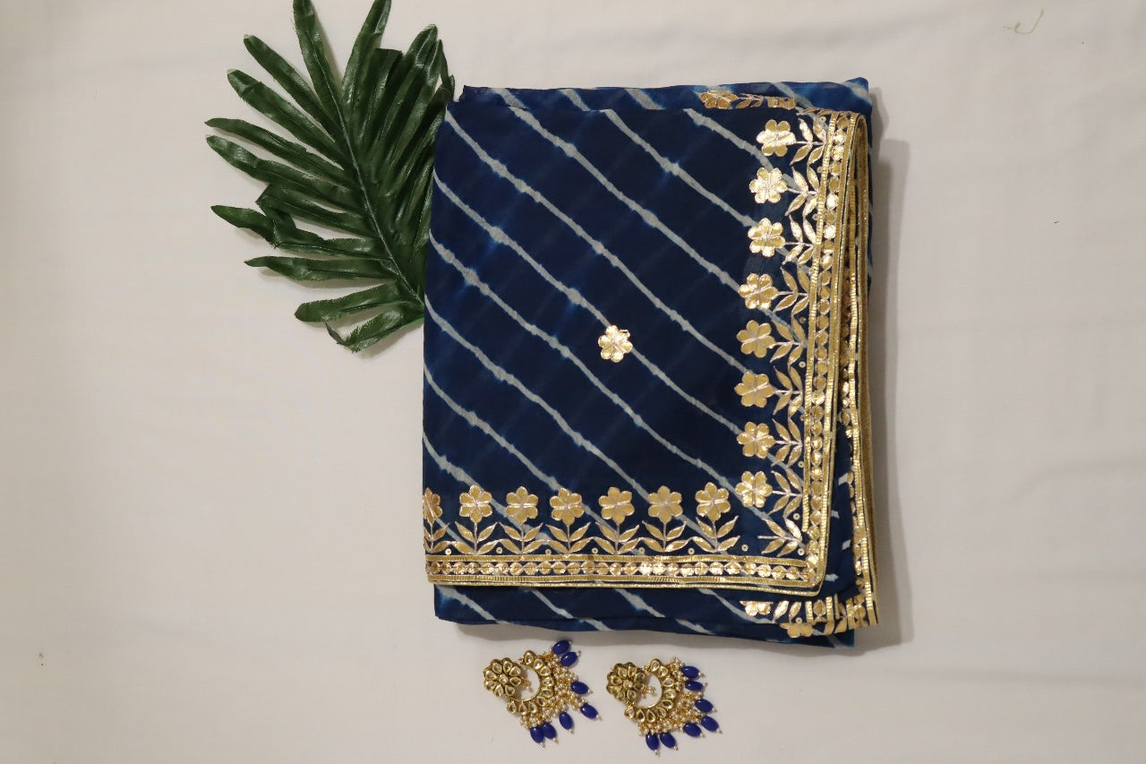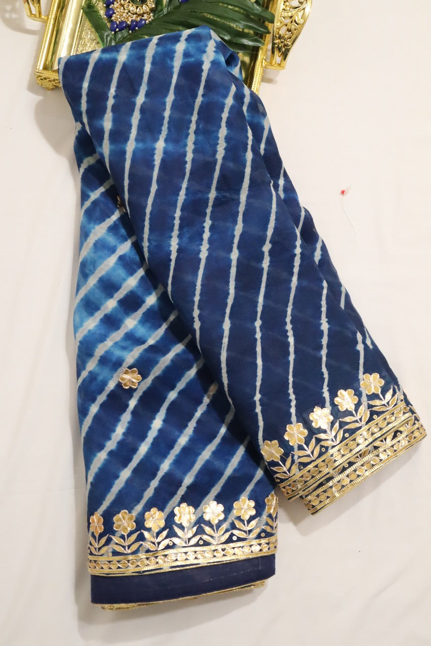 "This Gotta Patti Work Saree is a perfect occasion wear. Gota Patti Work also known as Gota work, Gota Kinari Work, or Lappe Ka Kaam is a type of metal embroidery originated in Rajasthan, India. Flowers, leaves, birds, animal etc. are the popular Gota work designs.