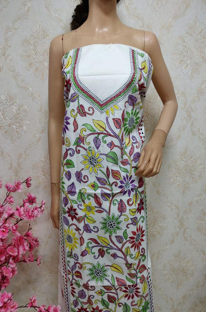 This Hand Embroidered Kantha Cotton Kurti is a must have in your wardrobe which is a perfect occasion wear.