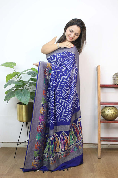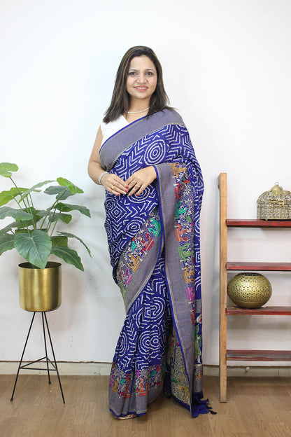 Overall, the Blue Banarasi Bandhani Pure Georgette Meenakari Saree is a must-have for any woman who loves traditional Indian attire. It is a timeless piece that will never go out of style, and it is sure to make you look and feel your best on any special occasion.
