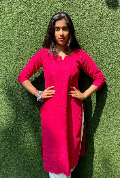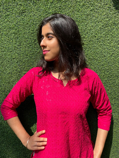 A beautiful Cotton embroidered stitched Kurti . This Kurti is embroidered with intricate chikankari.