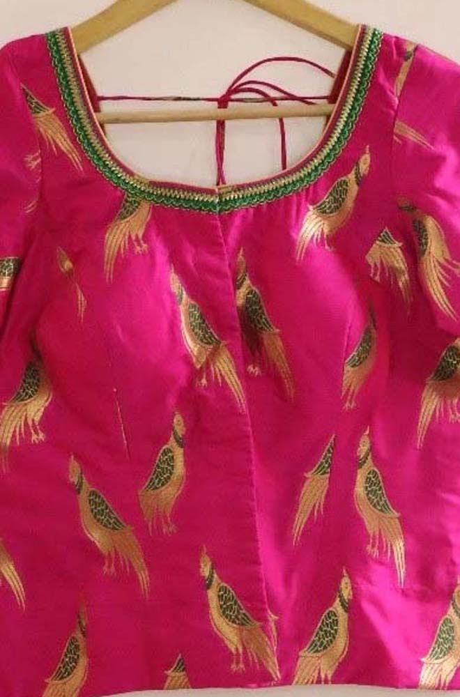 Pink Banarasi Parrot Design Blouse (made on order).