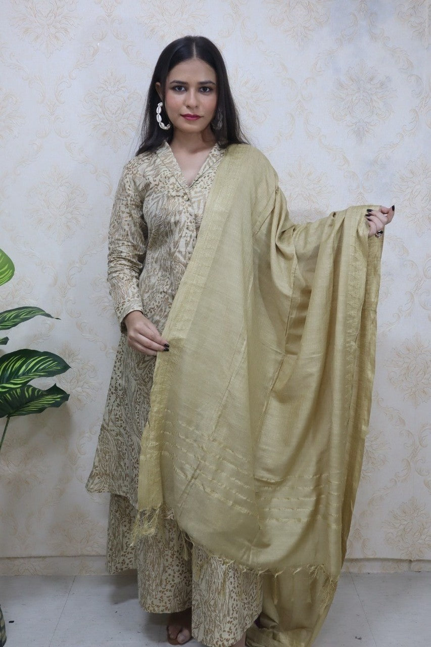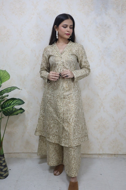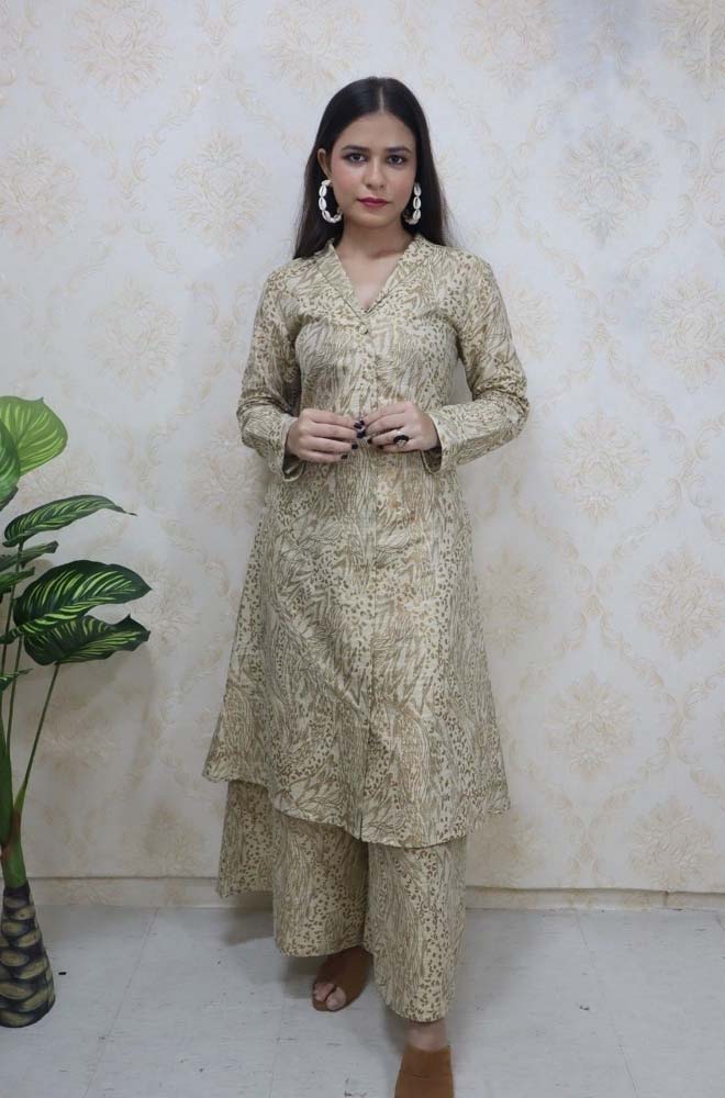 Pastel Notch Collor Kurti With A - Line Palazzo (made on custom order).