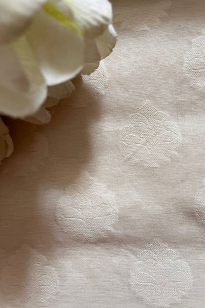 Dyeable Banarasi Handloom Cotton Fabric is a luxurious and versatile fabric that is perfect for creating stunning garments and home decor items. This fabric is handwoven in the traditional Banarasi style, giving it a unique and intricate design that is sure to impress. The cotton material is soft and breathable, making it comfortable to wear in any season. One of the standout features of this fabric is its dyeable nature, allowing you to customize the color to suit your personal style. Additionally, the handloom construction ensures high quality and durability, making this fabric a long-lasting choice for your projects.