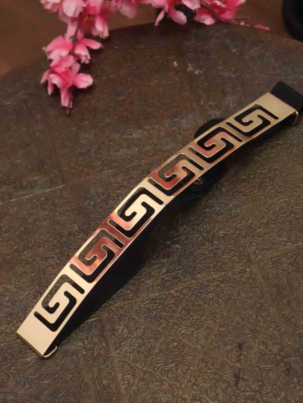 The Metallic Elastic Belt in Gold & Black is a professional accessory that adds a touch of sophistication to any outfit. Made with high-quality materials, this belt is both durable and stylish, making it the perfect addition to your wardrobe.