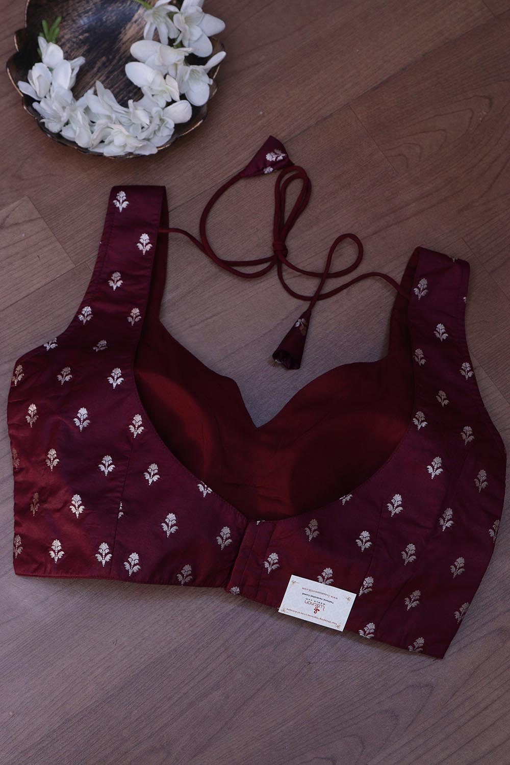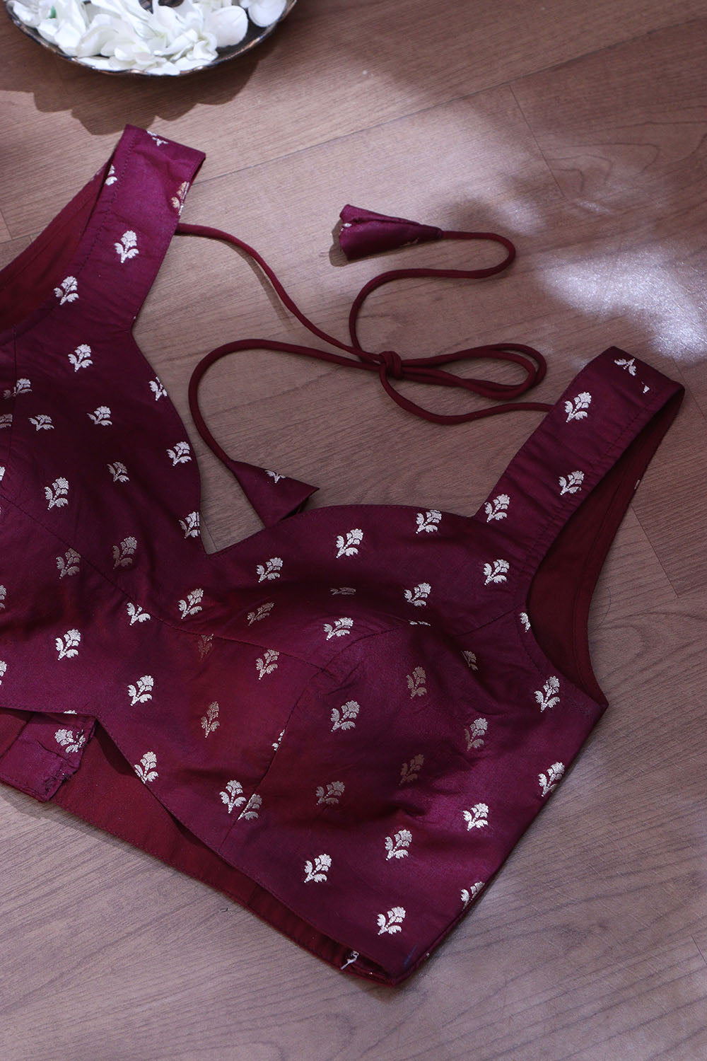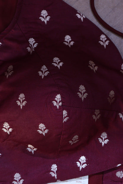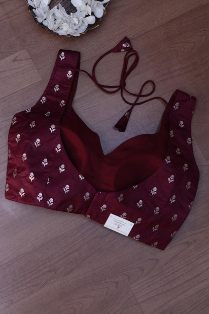 Adorn yourself with timeless elegance in our Maroon Banarasi Silk Padded Blouse. Crafted from luxurious Banarasi silk, its rich maroon hue exudes sophistication. Designed for both comfort and style, it features intricate detailing and a padded construction for a flattering fit. Perfectly complementing sarees or lehengas, its regal charm elevates any ensemble. Whether for weddings, festivals, or special occasions, this blouse adds a touch of opulence to your wardrobe. Embrace the exquisite craftsmanship of Banarasi silk and make a statement of grace and allure with this Maroon Padded Blouse, a quintessential piece for every discerning fashionista.