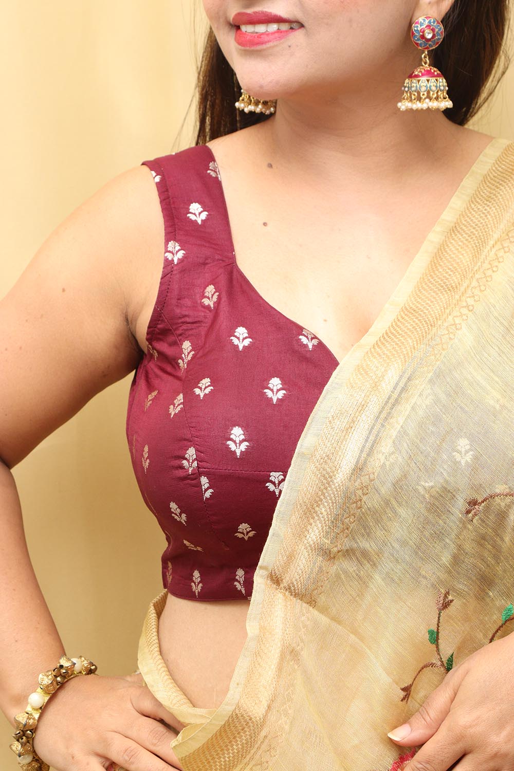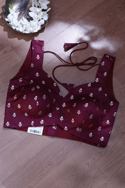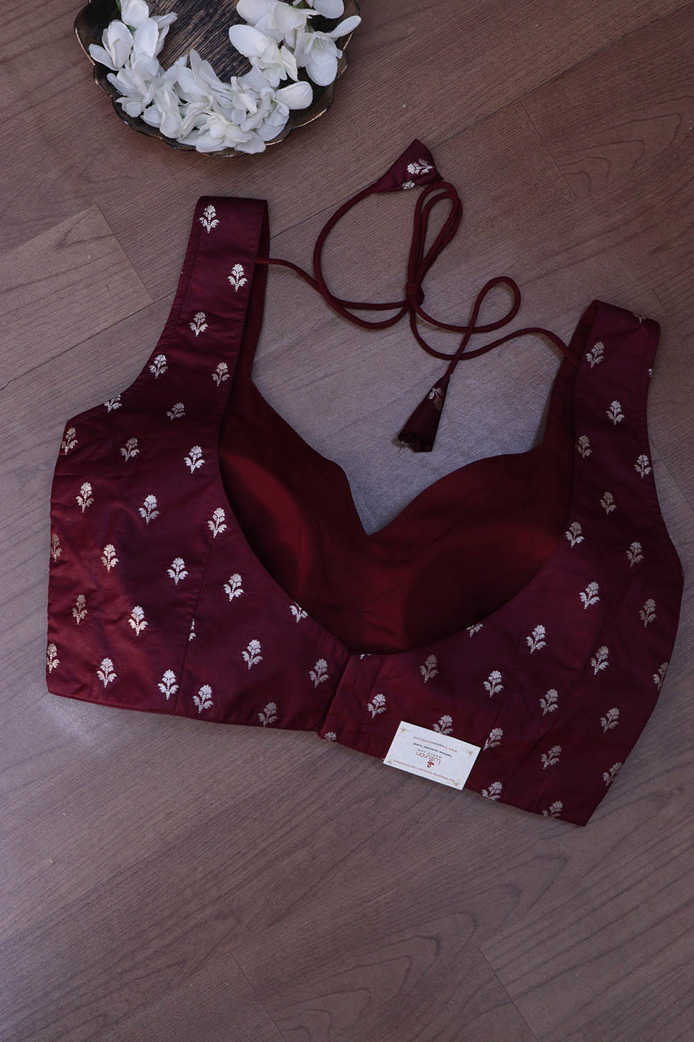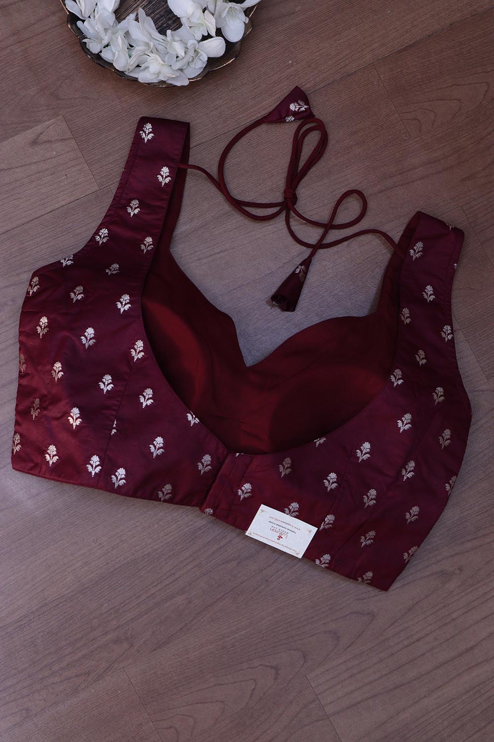 Adorn yourself with timeless elegance in our Maroon Banarasi Silk Padded Blouse. Crafted from luxurious Banarasi silk, its rich maroon hue exudes sophistication. Designed for both comfort and style, it features intricate detailing and a padded construction for a flattering fit. Perfectly complementing sarees or lehengas, its regal charm elevates any ensemble. Whether for weddings, festivals, or special occasions, this blouse adds a touch of opulence to your wardrobe. Embrace the exquisite craftsmanship of Banarasi silk and make a statement of grace and allure with this Maroon Padded Blouse, a quintessential piece for every discerning fashionista.