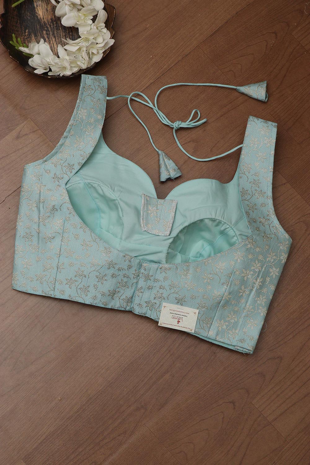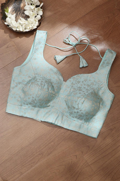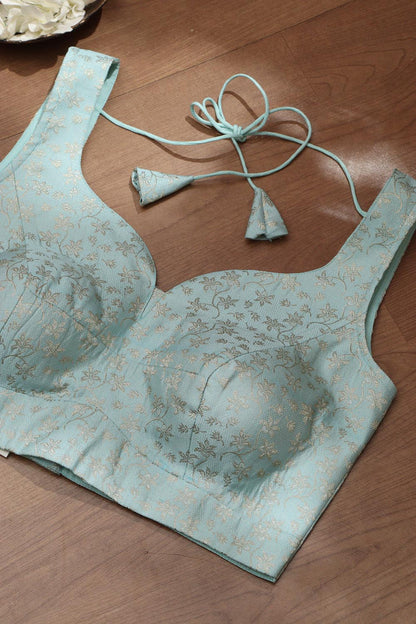 Indulge in elegance with our Blue Banarasi Silk Padded Blouse. Crafted from luxurious silk, its rich blue hue exudes sophistication. Intricate detailing adds timeless charm, while the padded construction ensures a flattering fit. Perfectly complementing sarees or lehengas, its opulent design elevates any ensemble. Whether for weddings, festivals, or special occasions, this blouse adds a touch of regal elegance to your wardrobe. Embrace the exquisite craftsmanship of Banarasi silk and make a statement of grace and allure with this Blue Padded Blouse, a must-have for every fashion-forward individual seeking style and sophistication in their ethnic attire.