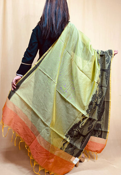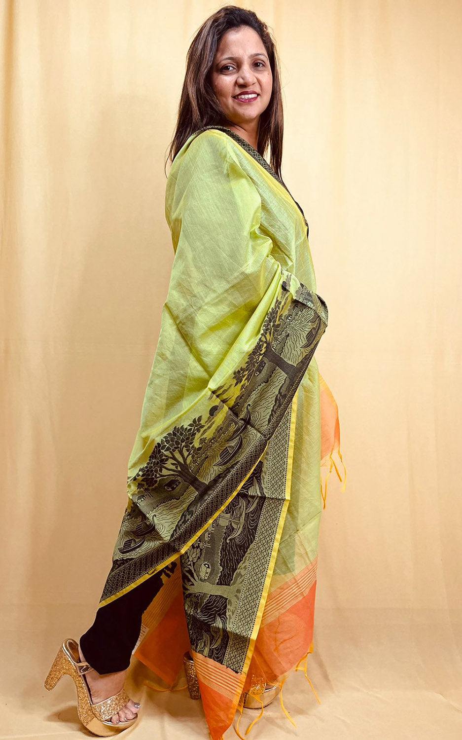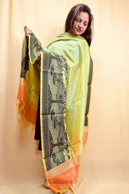 Add a touch of elegance to your ethnic attire with this stylish Green Banarasi Cotton Silk Dupatta. Made from a blend of cotton and silk, this dupatta is lightweight and comfortable to wear. The intricate Banarasi weaving adds a touch of traditional charm to your outfit, making it perfect for special occasions or festive events. The vibrant green color adds a pop of color to your ensemble, making you stand out in the crowd. Pair it with a plain kurta or a saree for a complete ethnic look that is sure to turn heads.