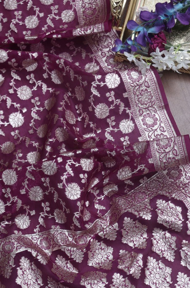 FABRIC: Organza Dupattas made from this fabric feel very light and are extremely comfortable to carry, at the same time they look really elegant. Organza is strong and durable with a firm hand and a flat smooth texture. The fabric of these Organza from has a natural stiffness to it without any application of starch or other stiffeners. Thin and light weight.